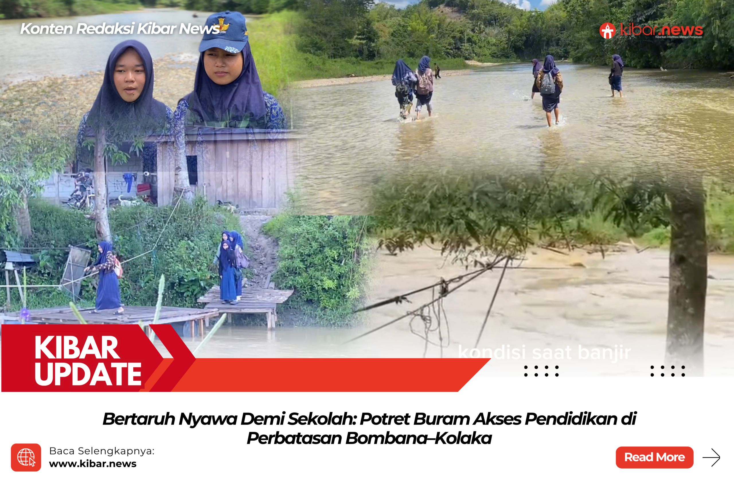 Kibar News, Bombana – Sebuah video yang viral di platform kembali menampar nurani publik. Rekaman yang diunggah akun Elborro itu memperlihatkan sekelompok anak sekolah berseragam batik biru nekat menyeberangi sungai demi sampai ke sekolah—sebuah potret getir tentang mahalnya harga pendidikan di wilayah pinggiran.
