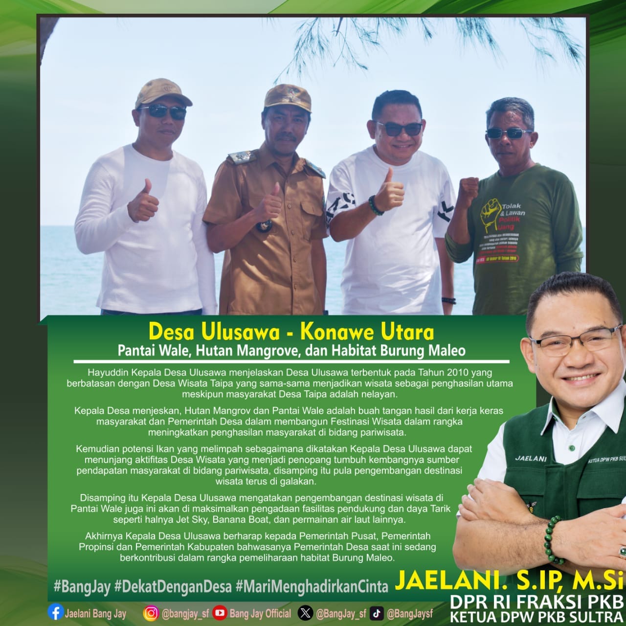 Kepala Desa menjelaskan pemerintah Desa Ulusawa menjelaskan Hutan Mangrove dan Pantai Wale adalah buah tangan hasil dari kerja keras masyarakat dan Pemerintah Desa dalam membangun Destinasi Wisata dalam rangka meningkatkan penghasilan masyarakat di bidang pariwisata.