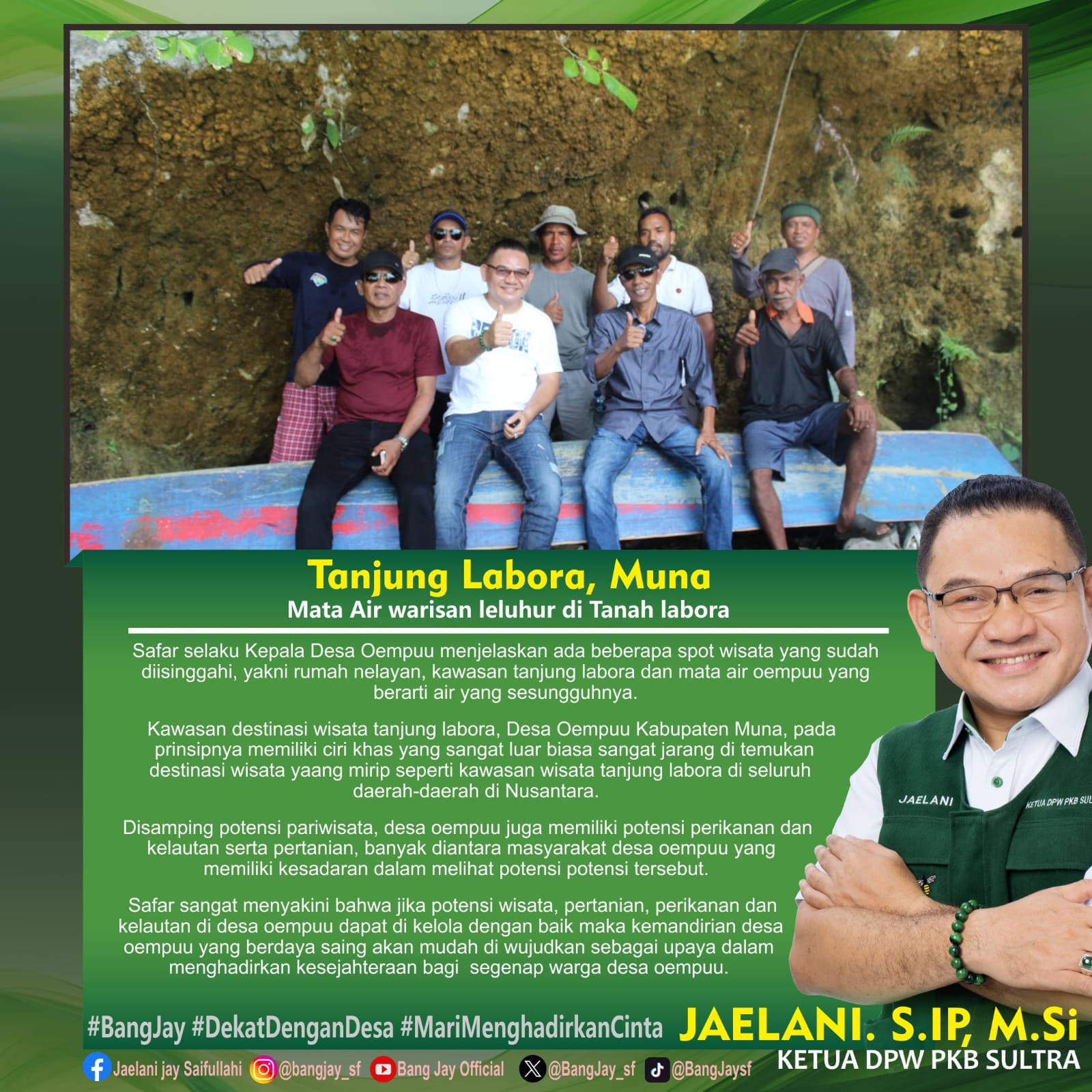 Safar menjelaskan kawasan destinasi wisata tanjung labora, Desa Oempuu Kabupaten Muna, pada prinsipnya memiliki ciri khas yang sangat luar biasa sangat jarang di temukan destinasi wisata yaang mirip seperti kawasan wisata tanjung labora di seluruh daerah-daerah di Nusantara.