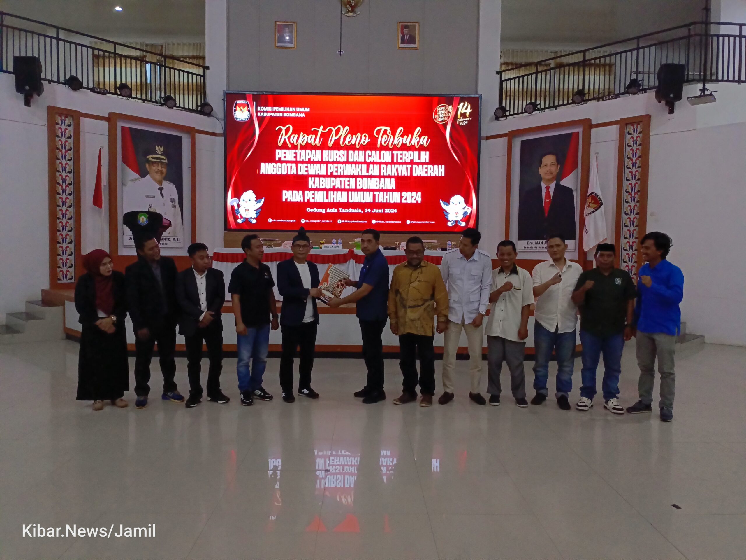 KIBAR.NEWS, DAERAH- Komisi Pemilihan Umum (KPU) Kabupaten Bombana, Sulawesi Tenggara (Sultra) menetapkan sebanyak 25 anggota Dewan Perwakilan Rakyat Daerah (DPRD) terpilih hasil pemilihan calon legislatif 14 Februari 2024 lalu. 25 anggota DPRD terpilih periode 2024-2029 tersebut ditetapkan dalam rapat pleno terbuka yang dihelat di aula Tanduale, Kantor Bupati Bombana, Jumat (14/6/2024).