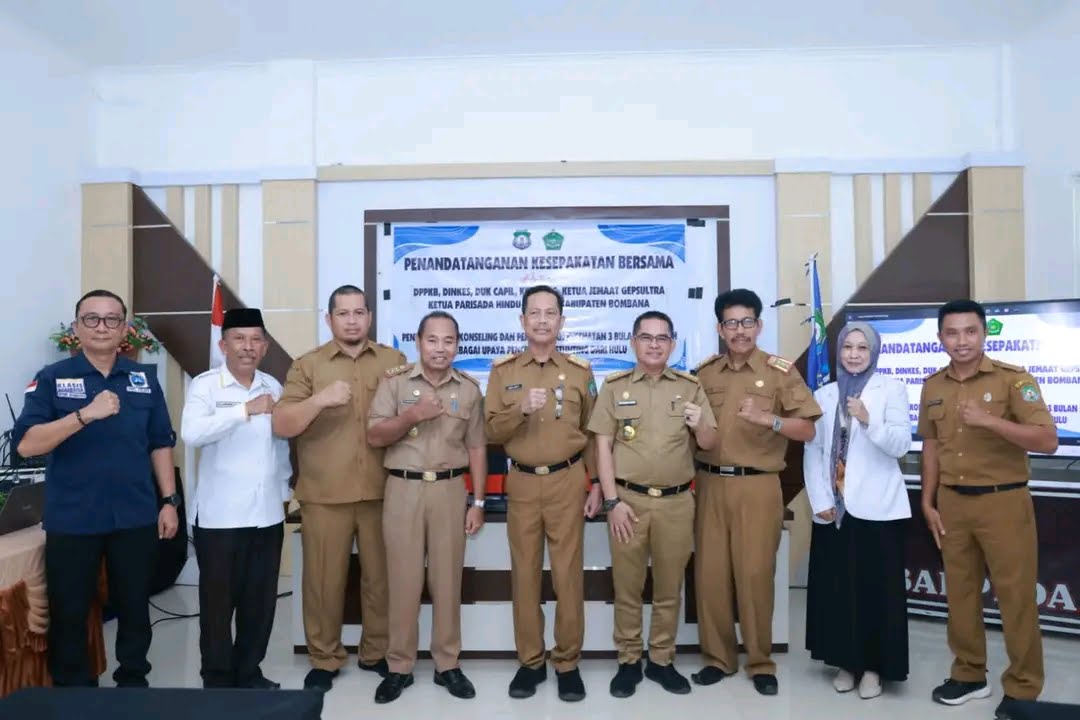 Pada kesempatan ini, Sekretaris Daerah ((Sekda) Bombana didampingi para kepala OPD dan pihak Kemenag Bombana menyepakati kerjasama yang berkaitan dengan pendampingan konseling dan pemeriksaan kesehatan bagi pasangan pada tiga bulan pra nikah.