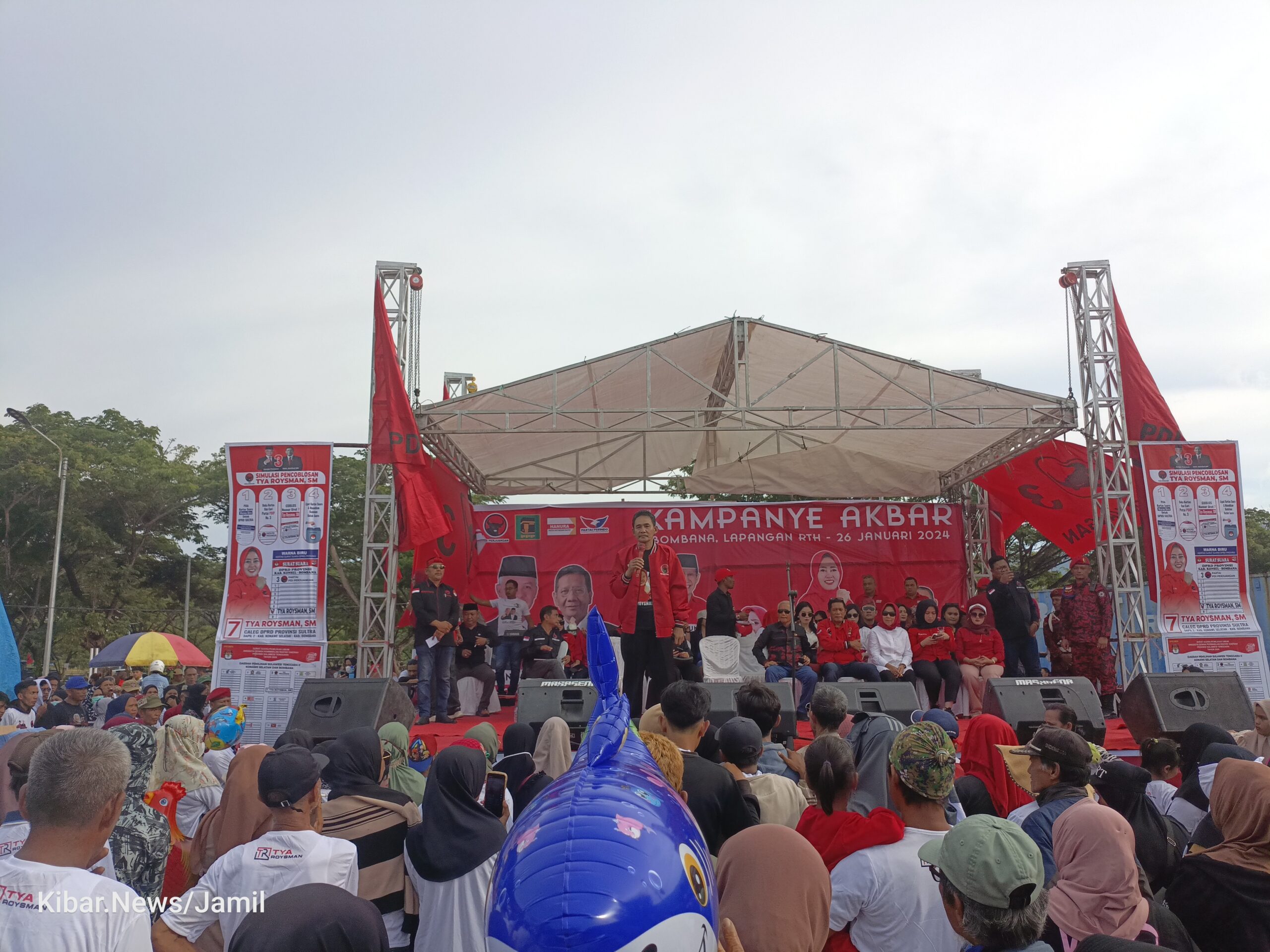 KIBAR.NEWS, DAERAH– Suasana Ruang Terbuka Hijau (RTH), Rumbia ibukota Bombana berubah memerah dalam sekejap. Hadirnya Partai Demokrasi Indonesia Perjuangan (PDIP) membuat ribuan massa memadati alun-alun pusat keramaian itu demi menyaksikan kampanye partai berlambang Banteng, Jumat (26/1/24).
