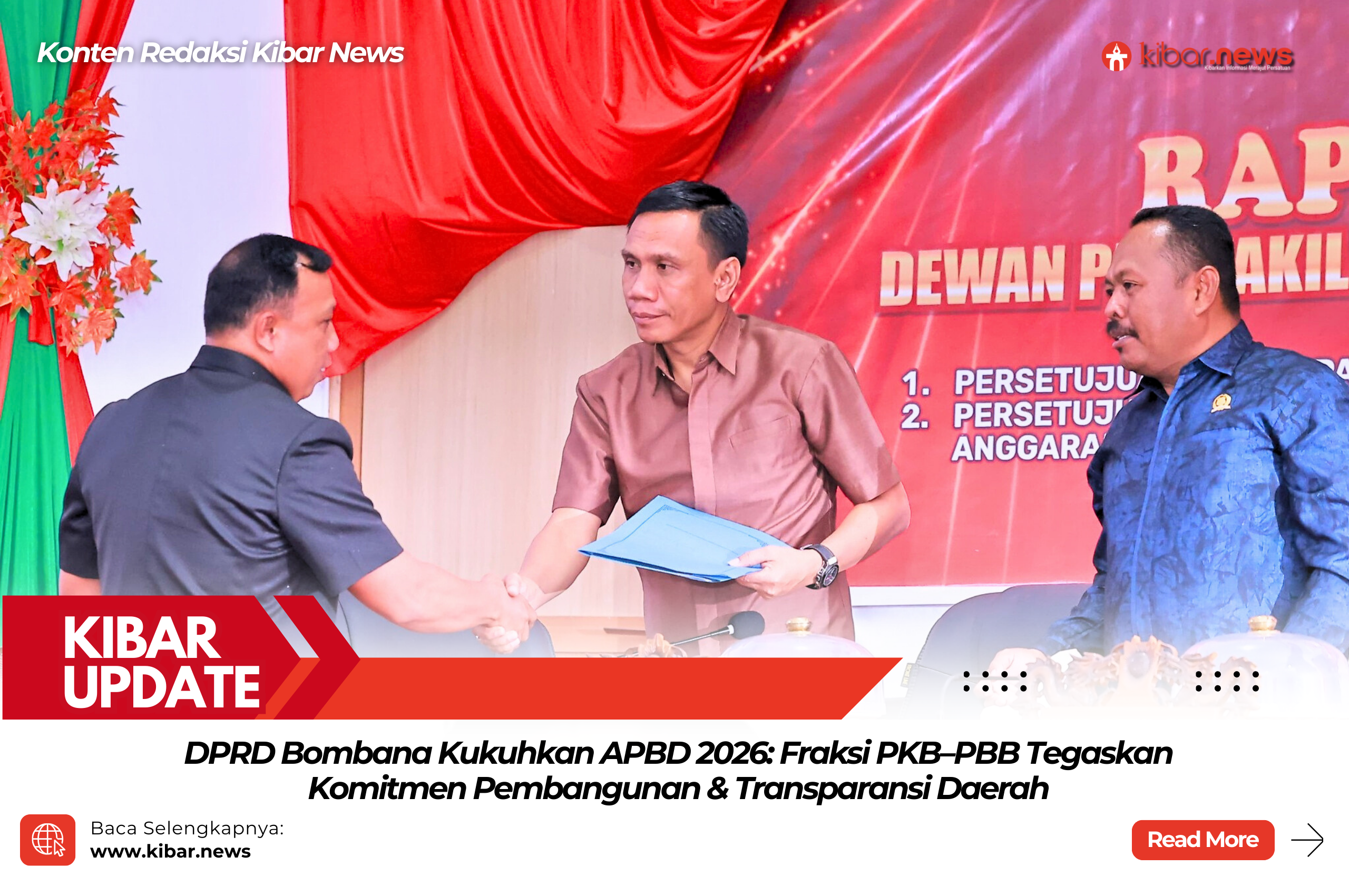 Kibar News, Bombana — DPRD Kabupaten Bombana resmi mengesahkan Rancangan Peraturan Daerah tentang APBD Tahun Anggaran 2026 dalam rapat paripurna istimewa. Salah satu pandangan strategis datang dari Fraksi Partai Kebangkitan Bangsa dan Partai Bulan Bintang (PKB–PBB), yang menyampaikan pendapat akhir sebagai bentuk dukungan penuh terhadap arah pembangunan Bombana tahun 2026. Pendapat akhir ini sekaligus mempertegas komitmen DPRD dalam memastikan APBD berjalan efektif, transparan, dan berpihak pada kepentingan masyarakat luas.