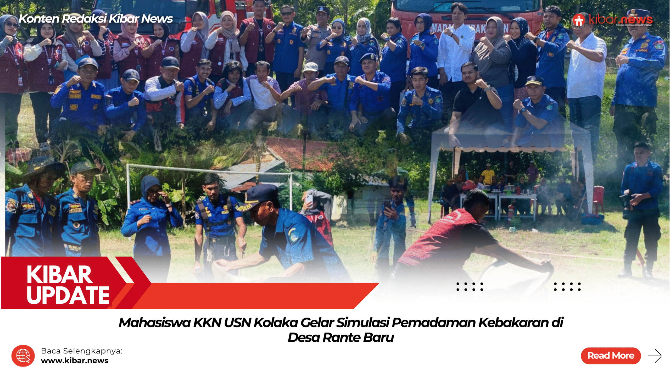 Mahasiswa Kuliah Kerja Nyata – Pembelajaran Masyarakat (KKN-PM) Universitas Sembilanbelas November (USN) Kolaka Angkatan XII, bekerja sama dengan Dinas Pemadam Kebakaran Kabupaten Kolaka Utara dan pemerintah desa, sukses menggelar simulasi pemadaman kebakaran, Rabu (30/7).